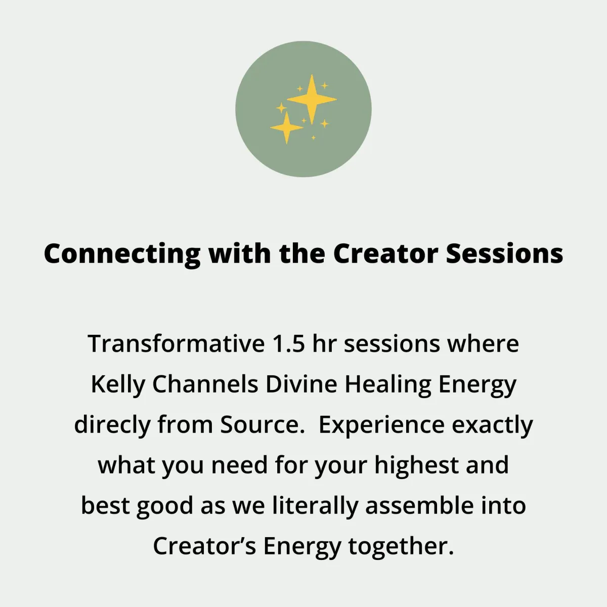 "The Connecting with the Creator sessions are unlike anything I've ever experienced. Kelly truly channels divine healing energy.