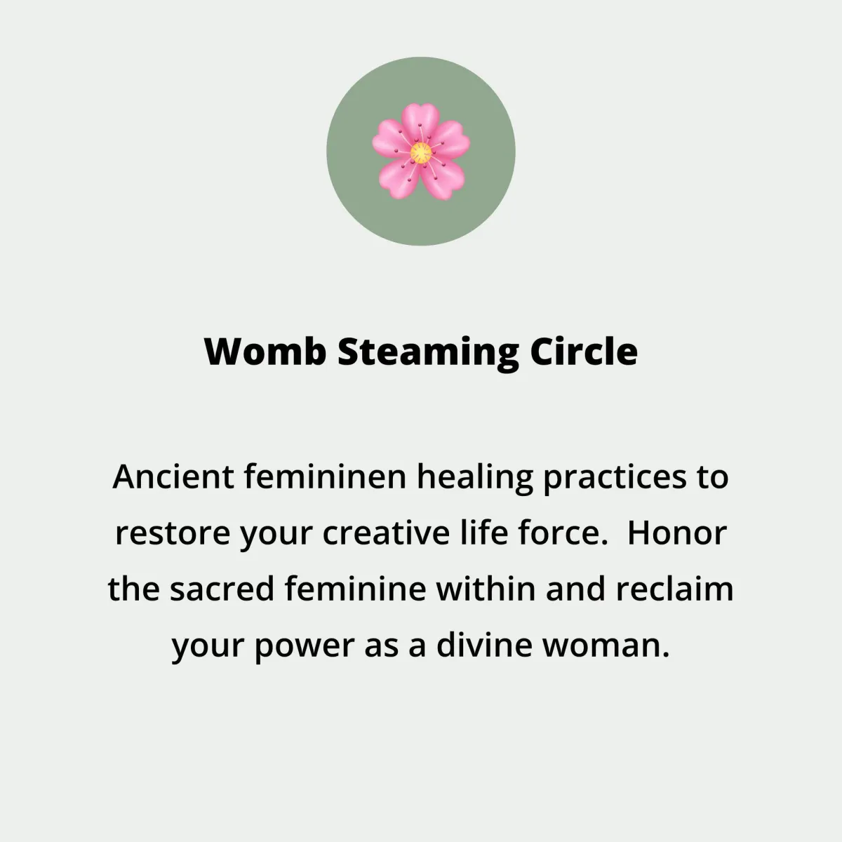 Sacred Womb Steaming Ceremonies: You'll experience sacred womb steaming using custom herbal blends, guided breathwork, and intuitive Reiki energy to support your physical, emotional, and spiritual renewal.