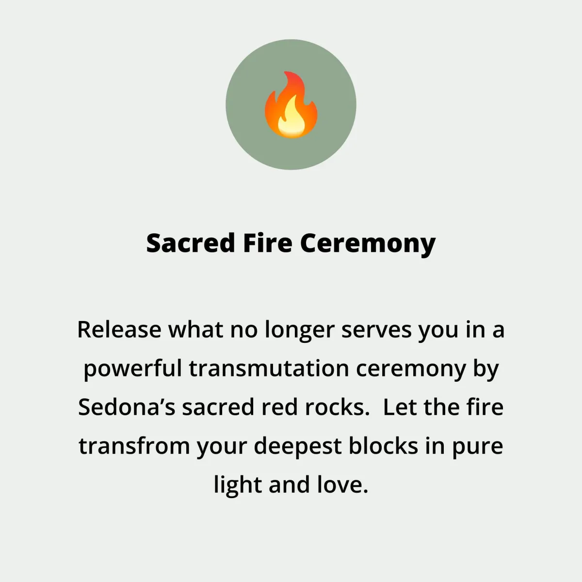 Multiple healing sessions, sacred sound healing, womb steaming circle, somatic movement, and sacred fire ceremony under the Sedona stars.