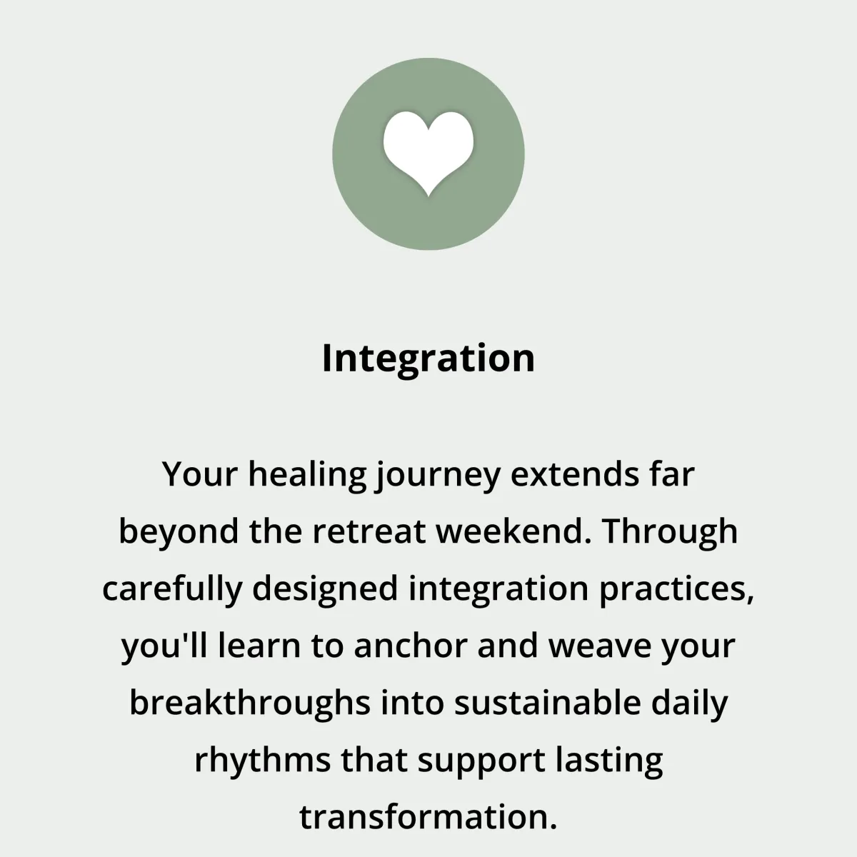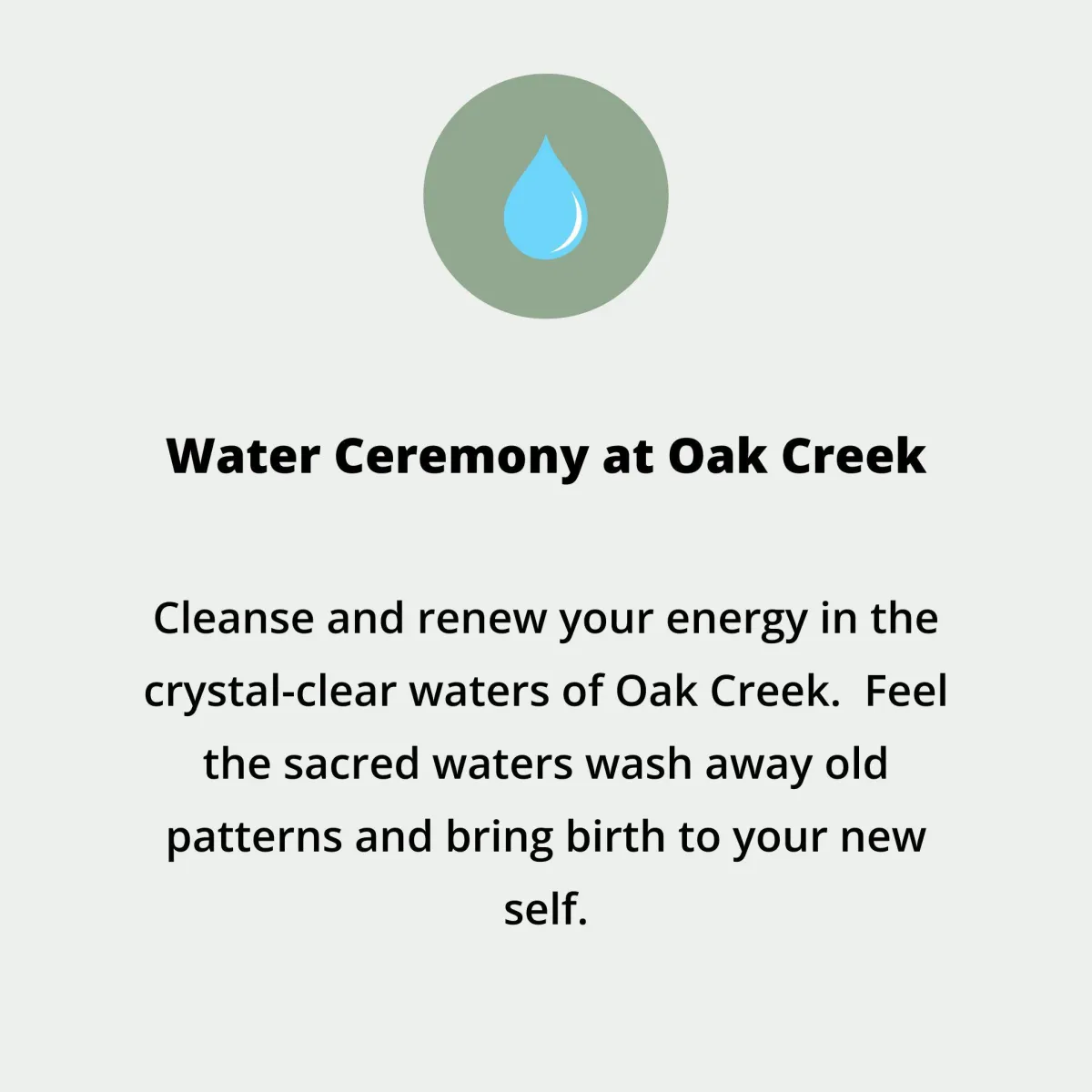 Oak Creek water ceremony, intensive healing sessions, trauma release work, and deep integration with sound healing.